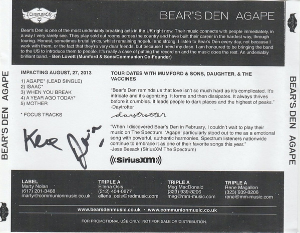Bear's Den – Agape (Advance Music)