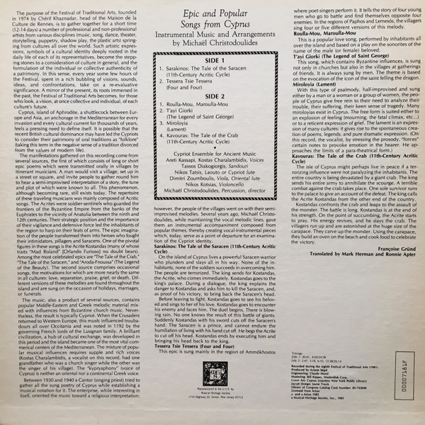Cypriot Ensemble For Ancient Music – Epic and Popular Songs from Cyprus
