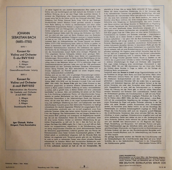 Johann Sebastian Bach – Violinkonzert E-Dur BWV 1042, Violinkonzert D-Moll BWV 1052