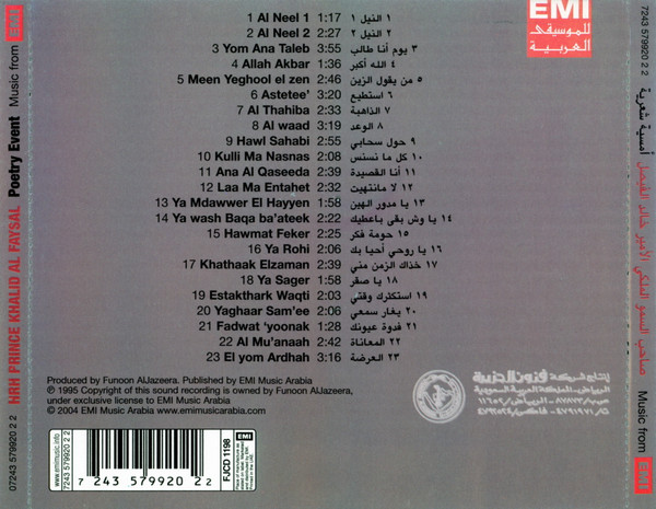 - Matrix / Runout : EMI - HRH Prince Khalid Al Faysal POETRY EVENT - 579920 2 - Planet Optical Disc Ltd. FZE