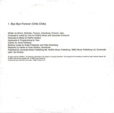 | 1 | Bye Bye Forever (Chiki Chiki) |