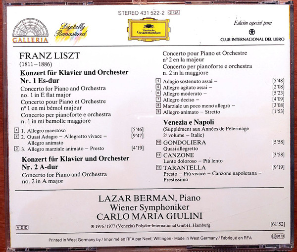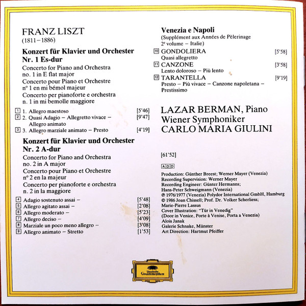 Franz Liszt – Klavierkonzerte Nr. 1 & 2 / "Venezia E Napoli": Gondoliera, Canzone & Tarantella