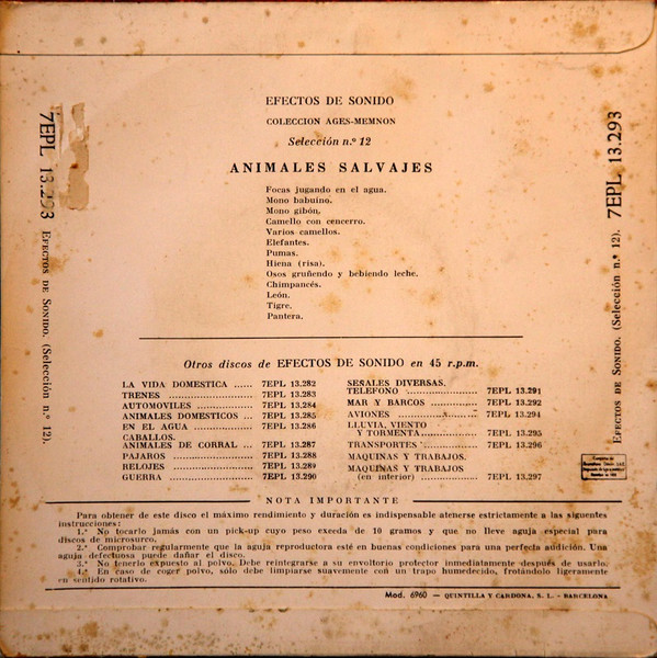 Неизвестный исполнитель – Efectos de Sonido. Selec. 12. Animales Salvajes