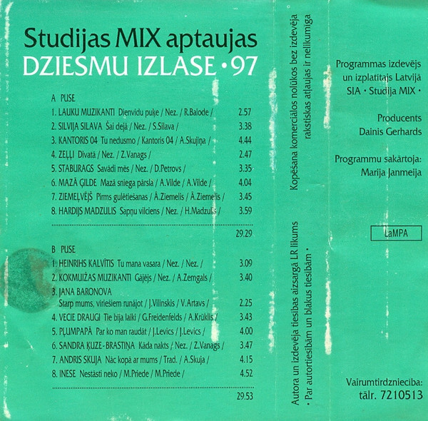Various – Studijas Mix Aptauja 1997: Dziesmu Izlase