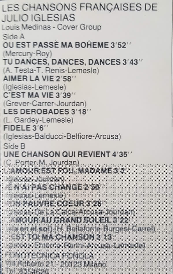 Louis Medinas - Cover Group – Les Chansons Françaises De Julio Iglesias