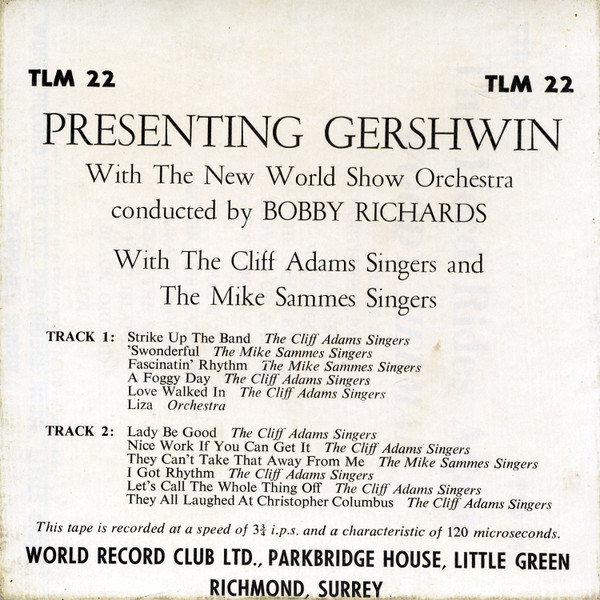 - Vocals – The Cliff Adams Singers