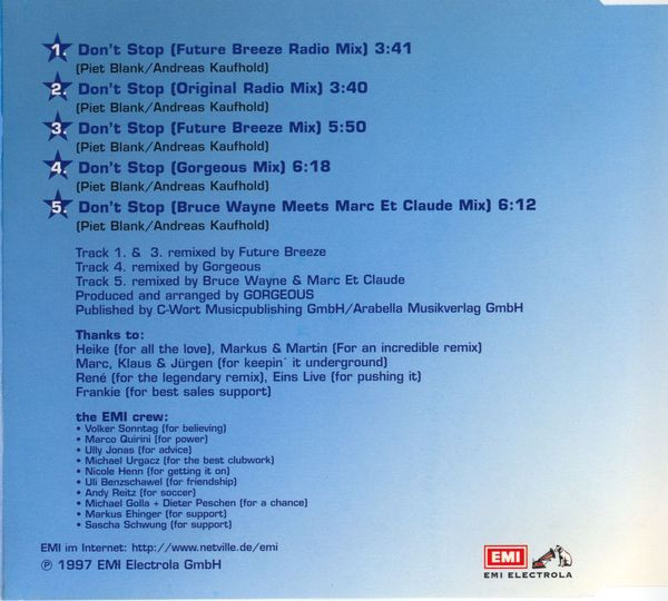 | 5 | Don't Stop (Bruce Wayne Meets Marc Et Claude Mix) |