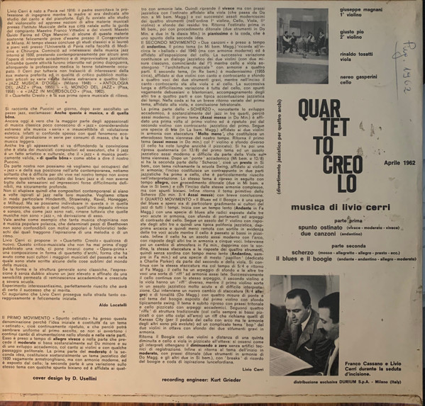 Livio Cerri – Quartetto Creolo (Divertimento Jazzistico Per Quattro Archi)