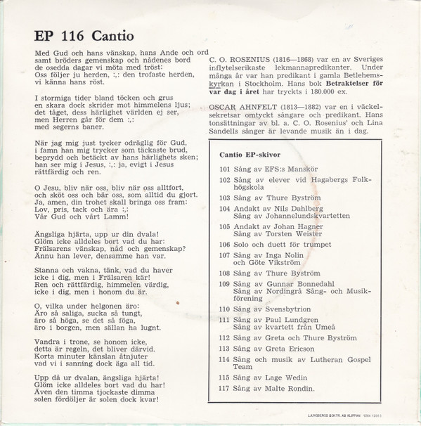 Written-By – Carl Olof Rosenius