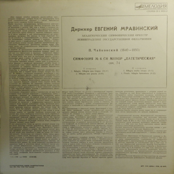 Leningrad Philharmonic Orchestra – Симфония № 6 Си Минор "Патетическая" соч. 74
