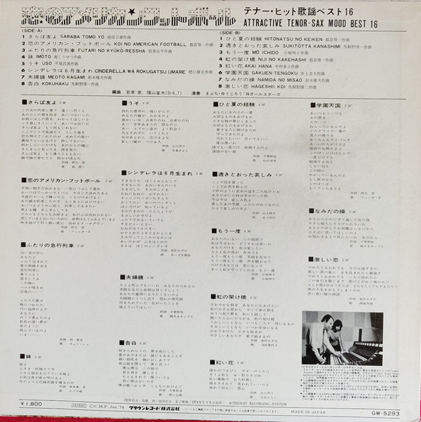 まぶち・ゆうじろう'74オールスターズ – 恋のアメリカン・フットボール -テナー・ヒット歌謡ベスト16- = Attractive Tenor-Sax Mood Best 16