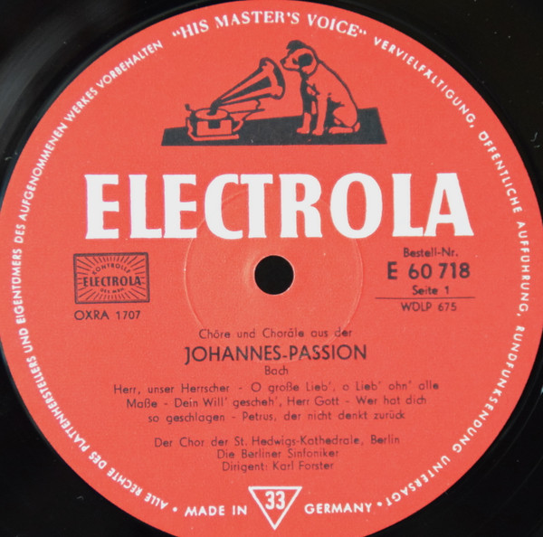 Лейбл: Electrola – E 60 718 Die Stimme Seines Herrn – WDLP 675