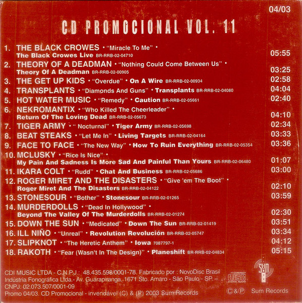 - Manufactured By – NovoDisc Brasil Indústria Fonográfica Ltda.