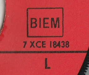 - Rights Society In rectangle, on labels: BIEM