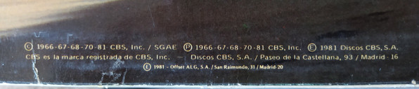 - Manufactured By – Discos CBS, S.A., Madrid