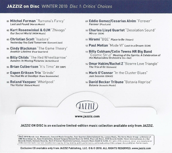 Various – Jazziz On Disc - Winter 2010 - Critics' Choices And Other Voices