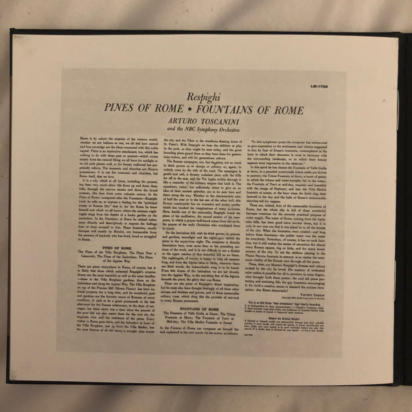 NBC Symphony Orchestra – Roman Trilogy: Pines Of Rome / Fountains Of Rome / Roman Festivals