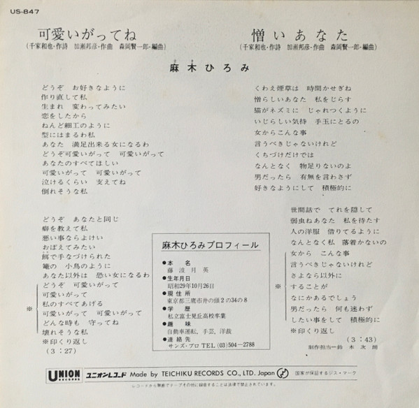 - Made By – Teichiku Records Co., Ltd.