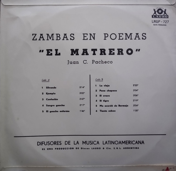 Juan C. Pacheco – Zambas en Poemas "El Matrero"