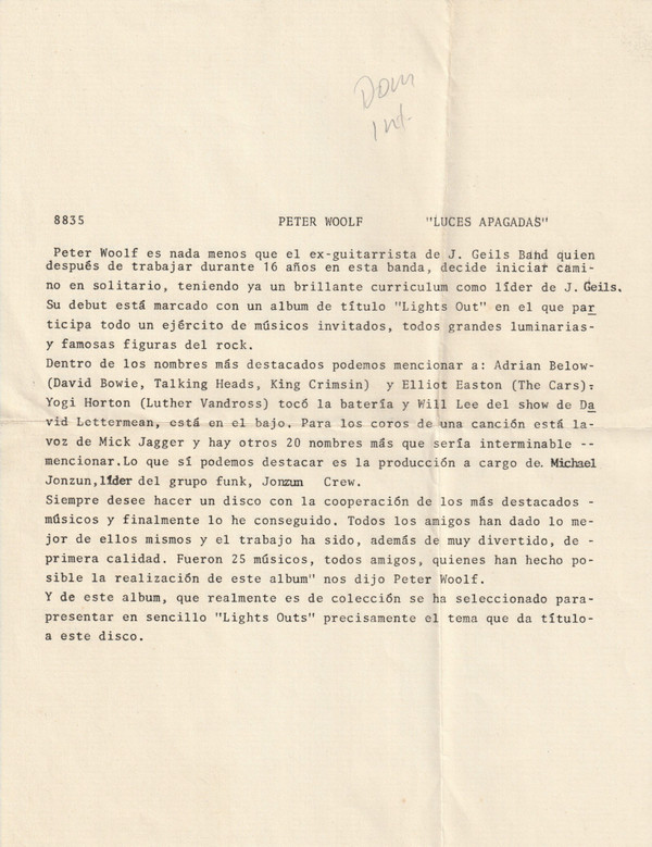 Peter Wolf – Lights Out
