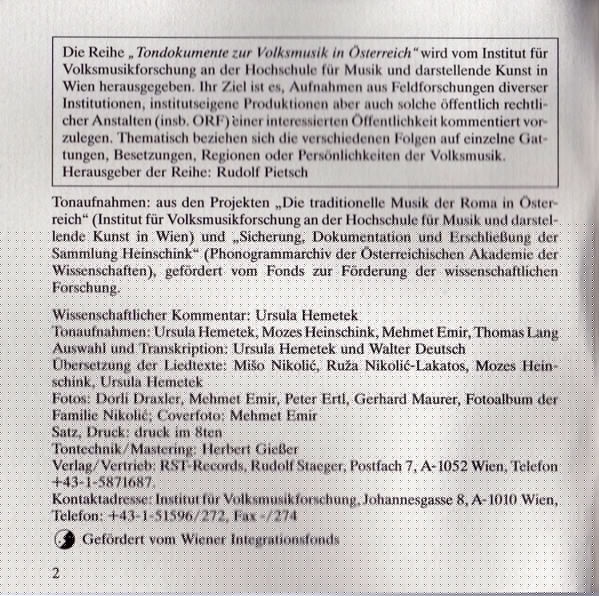 - Recorded By, Liner Notes [Scientific Commentar], Translated By, Editor [Auswahl], Transcription By – Ursula Hemetek