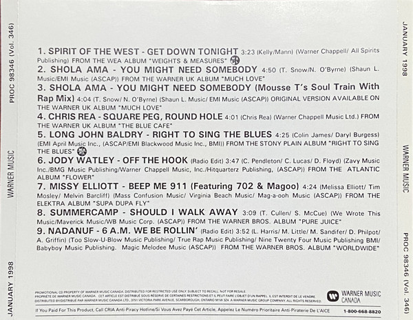 Various – Warner Music Canada Promotional CD - Volume 346 - January 1998