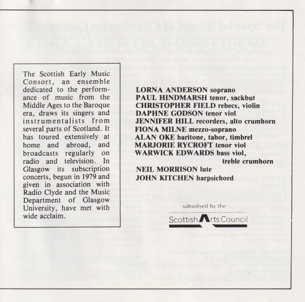 Baritone Vocals – Alan Oke Mezzo-soprano Vocals – Fiona Milne Rebec [Alto Rebec] – Christopher Field Recorder [Tenor Recorder] – Jennifer Hill (3) Soprano Vocals – Lorna Anderson Tenor Vocals – Paul Hindmarsh Viol [Bass Viol] – Warwick Edwards Viol [Tenor Viol] – Marjorie Rycroft |