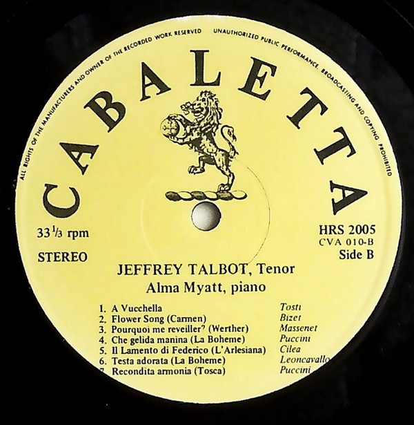 - Piano, Accompanied By – Alma Myatt
