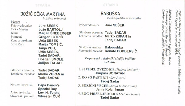 Translated By [Slovenski prevod] – Silvester Čuk Voice Actor [Očka Martin] – Jože Bartolj Voice Actor [Pometač] – Gregor Lotrič Voice Actor [Sovaščani] – Boštjan Smole Voice Actor [Sovaščani] – Tadej Sadar Voice Actor [Sovaščani] – Julian Taljat Voice Actor [Sovaščani] – Marija Tomšič Voice Actor [Sovaščani] – Tanja Puh Voice Actor [Žena z otrokom] – Urša Sešek Written-By [Avtor izvirnika] – Лев Николаевич Толстой |