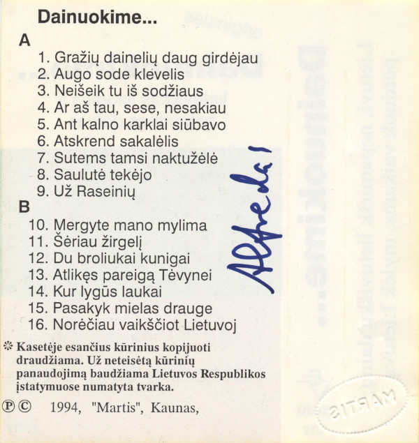 | A1 | Gražių Dainelių Daug Girdėjau |