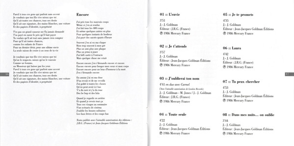 Featuring – Carmel (2) Lyrics By – Jean-Jacques Goldman Lyrics By – Michael Jones (5) Music By – Jean-Jacques Goldman |