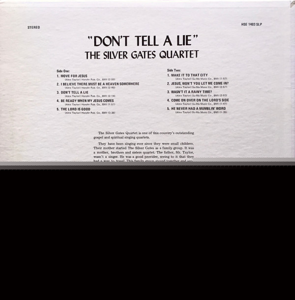 The Silver Gates Quartet – Don't Tell A Lie