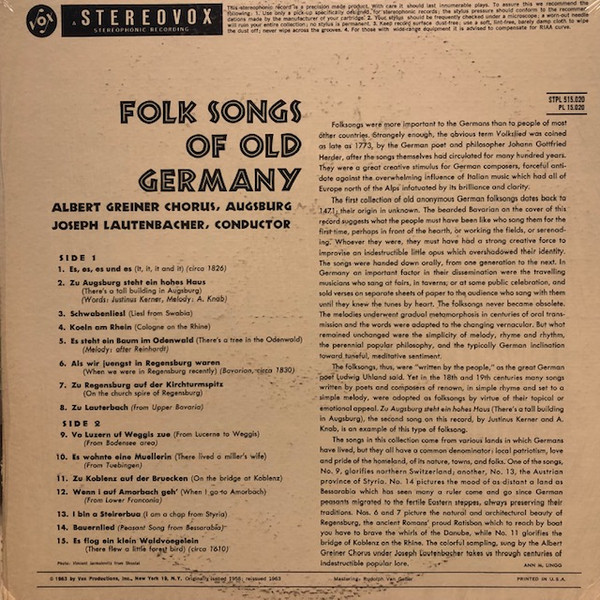Joseph Lautenbacher – Folk Songs Of Old Germany