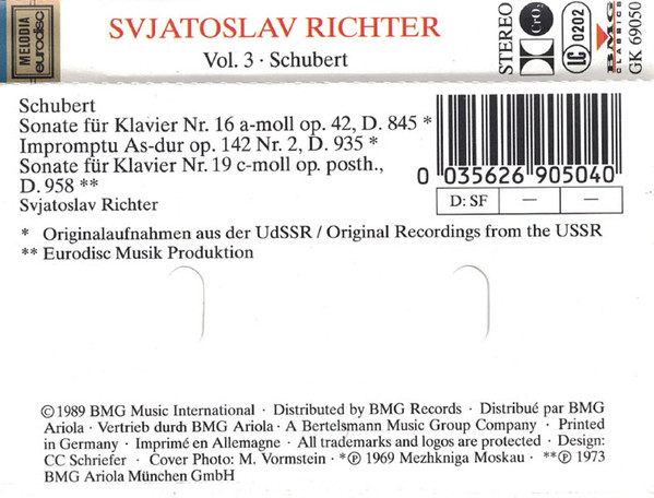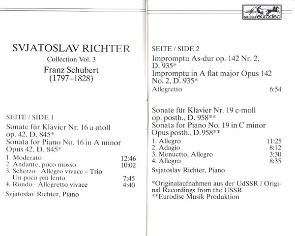 Franz Schubert – Vol 3. - Klaviersonaten Nr. 16 & 19, Impromptu As-dur Op. 142 Nr. 2