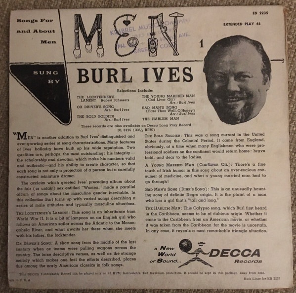 Burl Ives – Songs For And About Men Part 1
