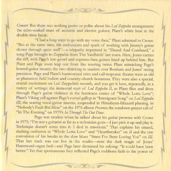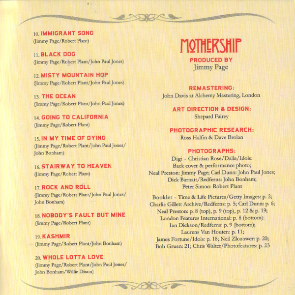 - Photography By [Jimmy Page, Booklet P. 8 (Top), P. 9 (Top), P. 12 & P. 19] – Neal Preston