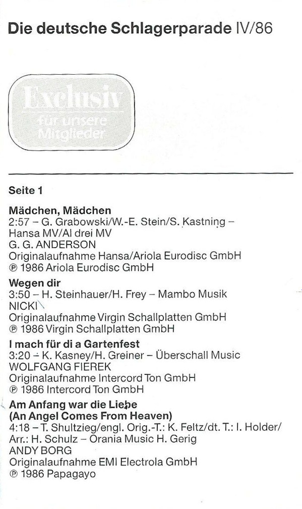 Various – Die Deutsche Schlagerparade 4/86