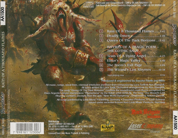 - Matrix / Runout : Cooperdisc RBR/LCR3000 RHAPSODY - RAIN OF A THOUSAND FLAMS