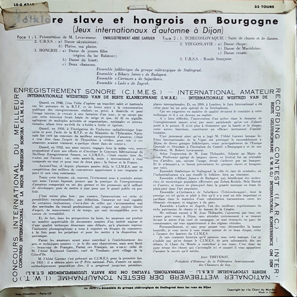 Various – Folklore Slave Et Hongrois En Bourgogne (Jeux Internationaux D'Automne À Dijon)
