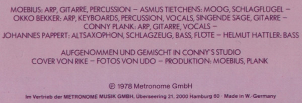 - Synthesizer [ARP], Guitar, Percussion, Producer, Written-By – Dieter Moebius