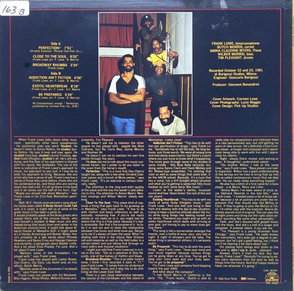 - Tenor Saxophone – Frank Lowe