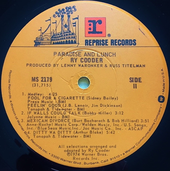 Ry Cooder – Paradise And Lunch