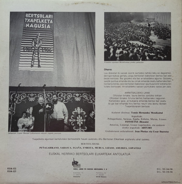 Various – Euskal Herriko Bertsolari Txapelketa Nagusia 1986 - Donostia - Arratsaldeko Saioa