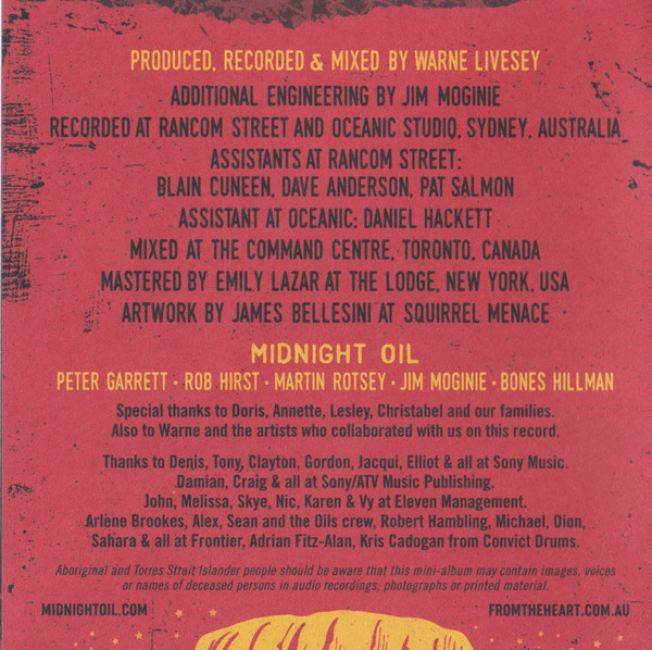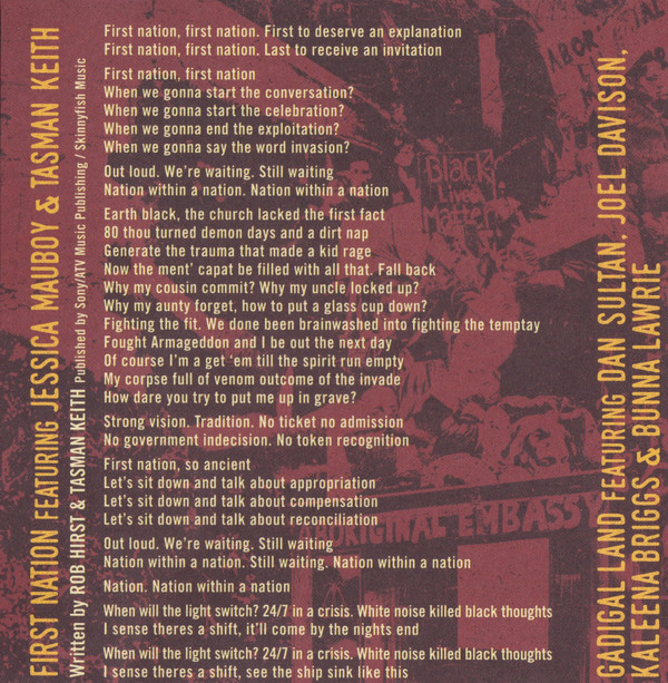 Sammy Butcher Midnight Oil Kev Carmody Backing Vocals – Kaleena Briggs Backing Vocals – Ursula Yovich Backing Vocals – Leah Flanagan Vocals – Sammy Butcher Vocals – Kev Carmody |