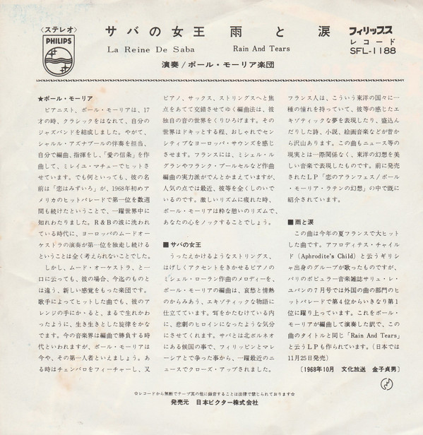 Le Grand Orchestre De Paul Mauriat – La Reine De Saba / Rain And Tears
