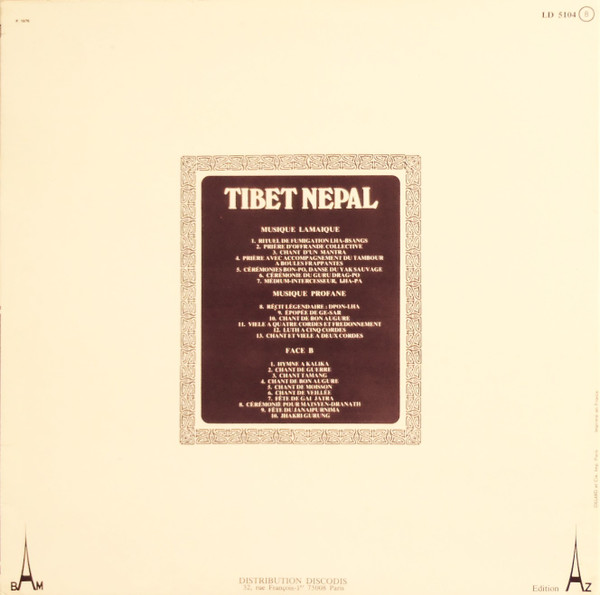 Неизвестный исполнитель – Tibet / Népal (Musique Bouddhiste Lamaïque / Musique Rituelle Et Profane)