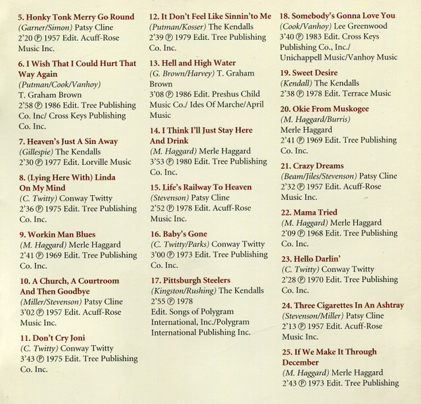 | 3-22 | Mama Tried | 2:09 | |
