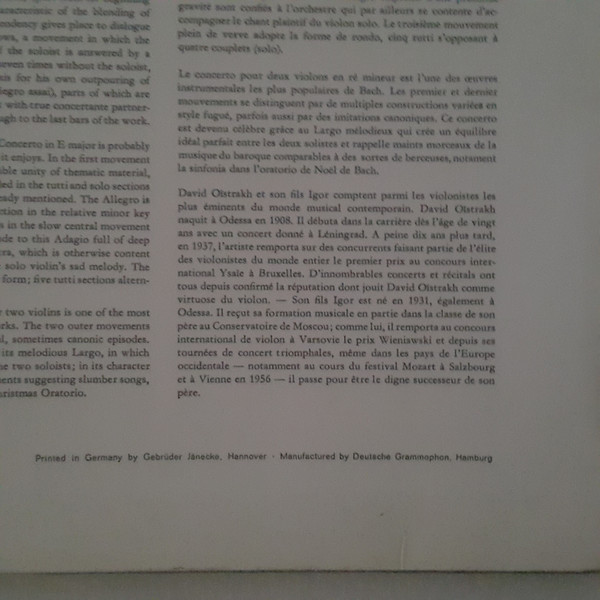 Violinkonzerte In A-moll Und E-Dur / Konzert Für Zwei Violinen In D-Moll