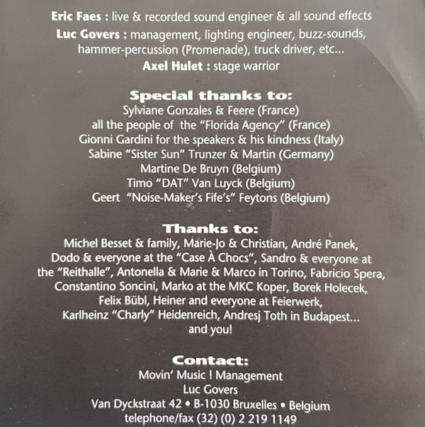 - Management, Lighting [Lighting Engineer], Noises [Buzz-sounds] – Luc Govers