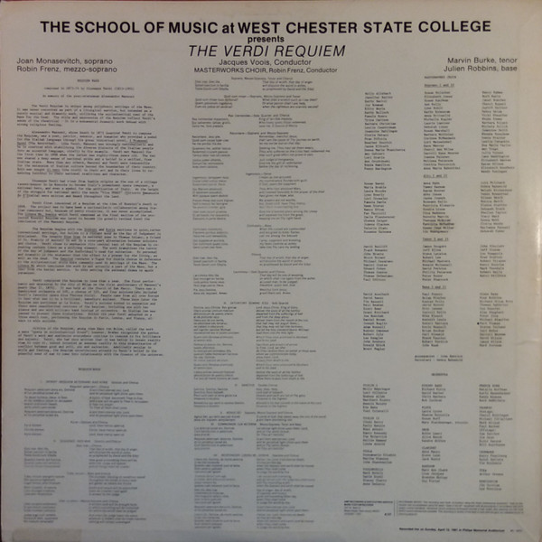 The School Of Music At West Chester State College – The Verdi Requiem